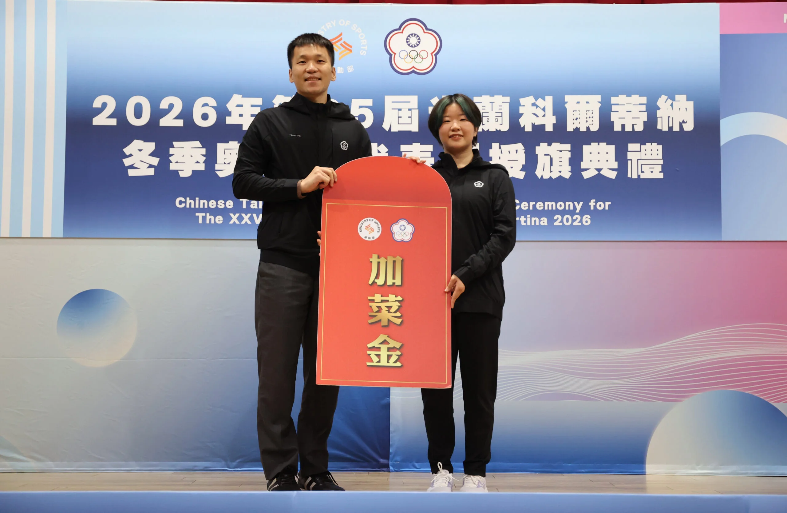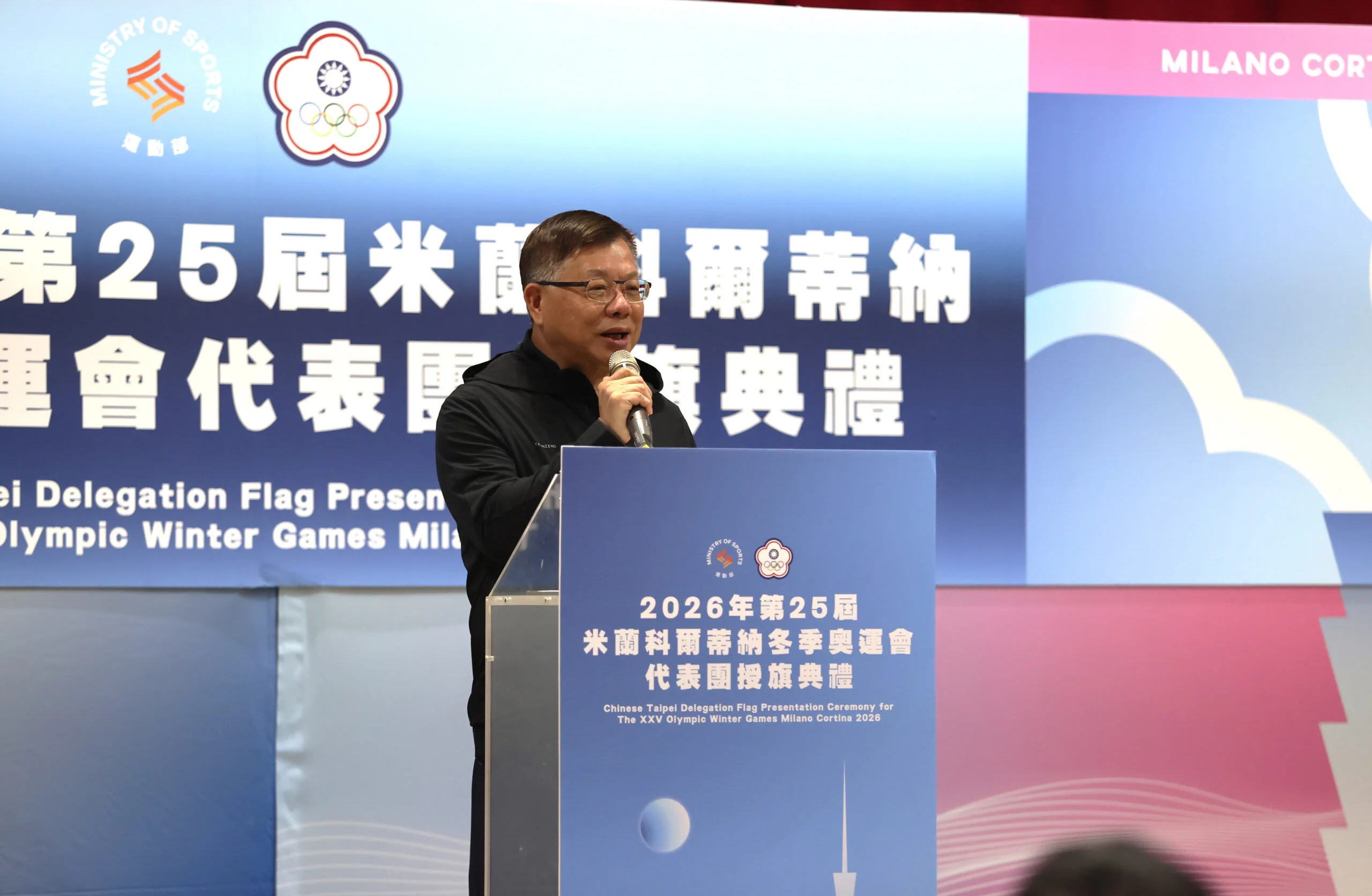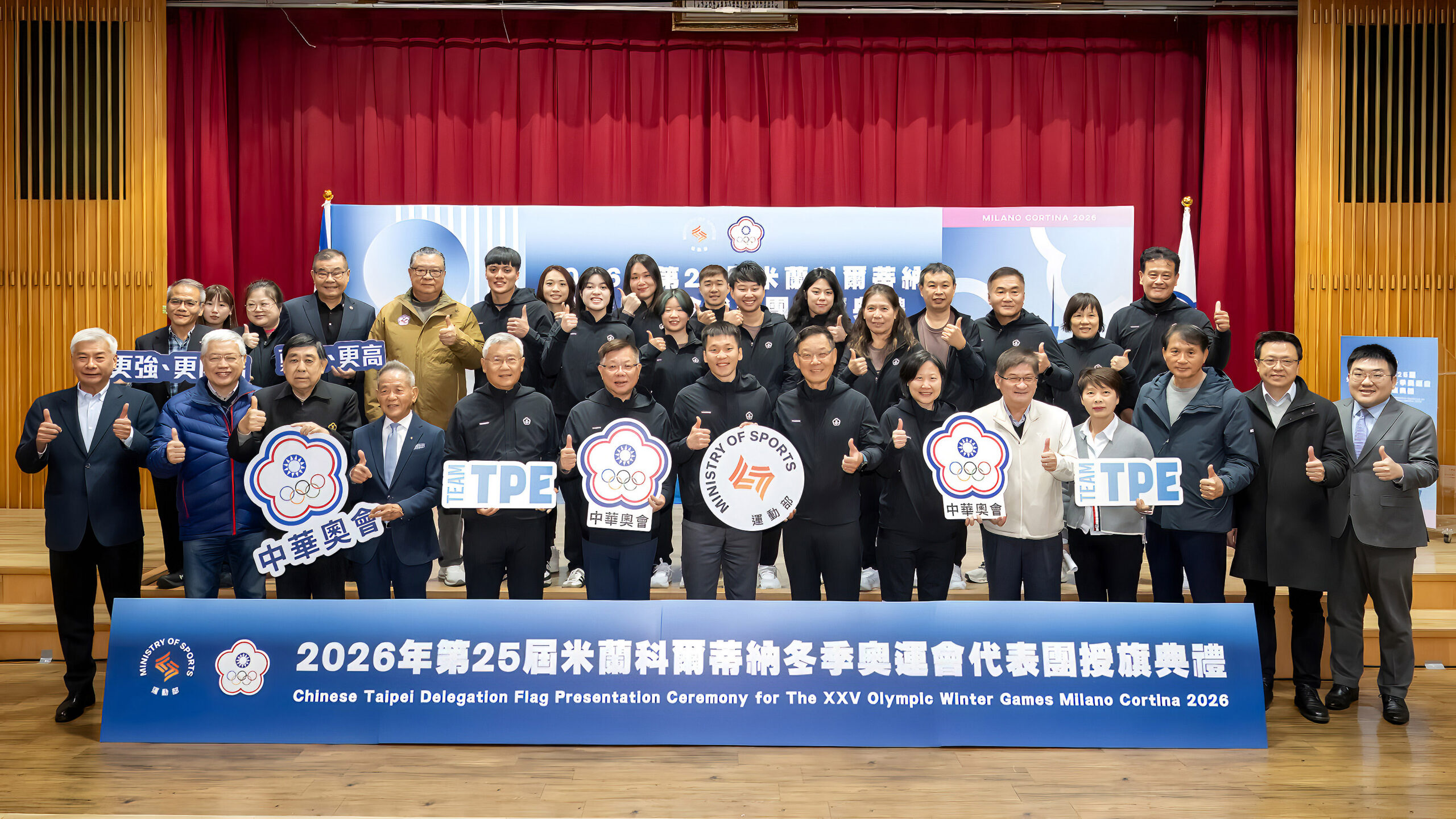 2026米蘭科爾蒂納冬季奧林匹克運動會將在2月6日至22日於義大利米蘭及科爾蒂納等地登場,中華代表團今日舉行授旗儀式,由運動部部長李洋授旗並致贈10萬元加菜金,為選手加油打氣,期勉代表團全力以赴。