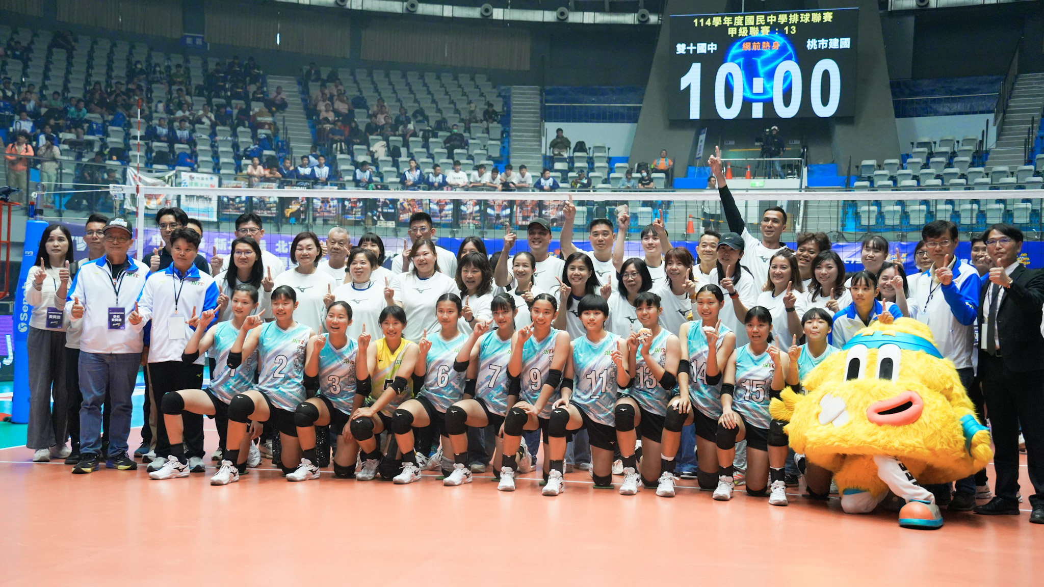JHVL女子組冠軍賽由全勝強者臺中市立雙十國中對決本屆從乙組挑戰甲組,就一路殺到冠軍寶座前的桃園市立建國國中,雙十強勢拿下前兩局率先聽牌,但桃市建國沒有輕言放棄,雙方戰至第4局才分出勝負,由雙十國中以3:1(25:18、25:22、17:25、25:19)奪下隊史第10冠。