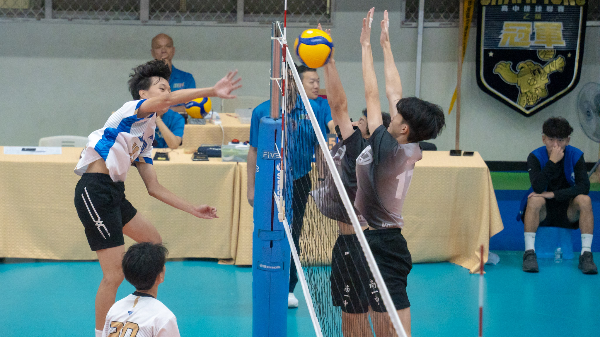 北門高中今日對戰成大南工,面對防守黏著度極高,掩護滴水不漏的對手,北門高中多次進入長回合球才落地。而作為重要火力的高洺謙選手表示:「隊伍選擇打的比對方快,不給反應的時間。」北門高中後續攻擊步調逐漸調快,用高度和速度直落二為自己爭取到晉級門票(25:19、25:19),關於明天關鍵的晉級賽,高洺謙表示有信心。而提到這次聯賽目標,他毫不猶豫:「冠軍!」隊友們也紛紛起鬨,期待本次聯賽帶回好成績。