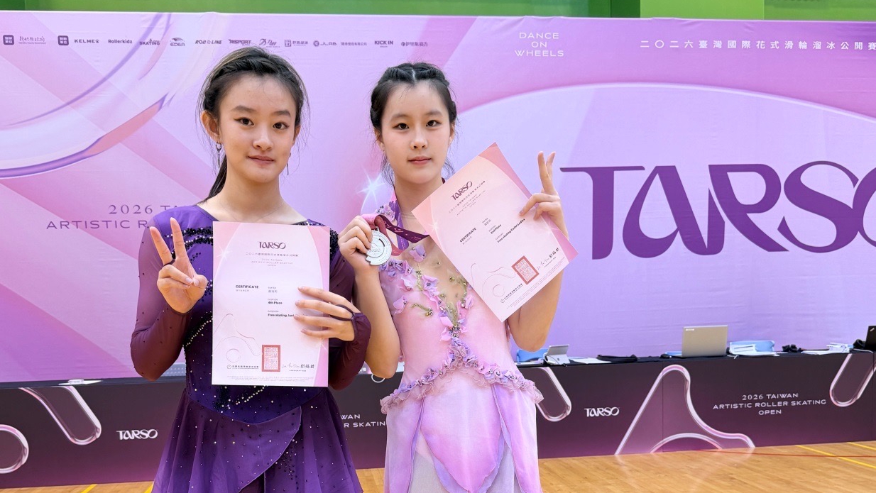 活躍於國內外各大比賽的花式溜冰姊妹花黃海琍及黃敏琍,在這場比賽中備受矚目,激烈競爭中依舊表現相當亮眼,分別獲得自由型青女組第四名及少女組第二名。