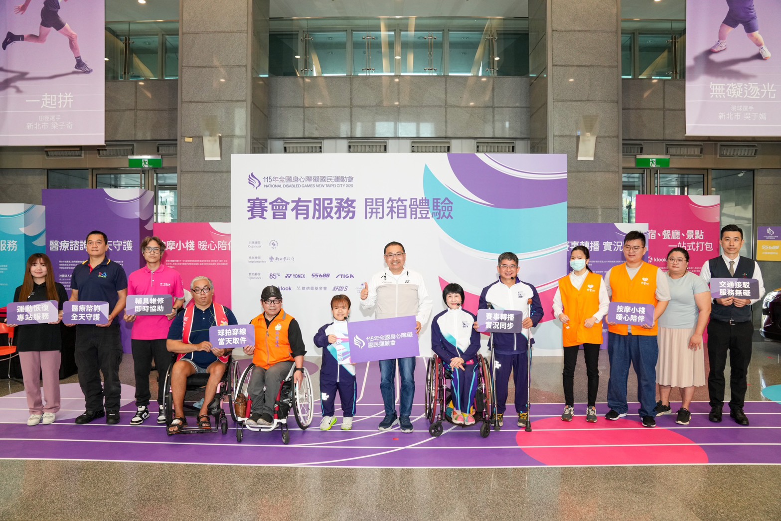 115年全國身心障礙國民運動會將於5月23日至26日在新北市登場,為讓外界更了解賽會貼心服務規劃,體育局今(20)日在市府舉辦《賽會有服務》開箱體驗,透過「選手的一天」情境模擬,邀請亞帕運羽球國手吳于嫣、臺灣最強桌球阿嬤盧碧春及新北市桌球選手林我欽親身參與,實際模擬選手在比賽期間可能遇到的各種狀況,包含器材損壞、身體恢復、交通接駁等,全面展現新北打造「服務型賽會」的用心與準備,讓民眾近距離感受賽會如何從細節出發,提供全方位支持。