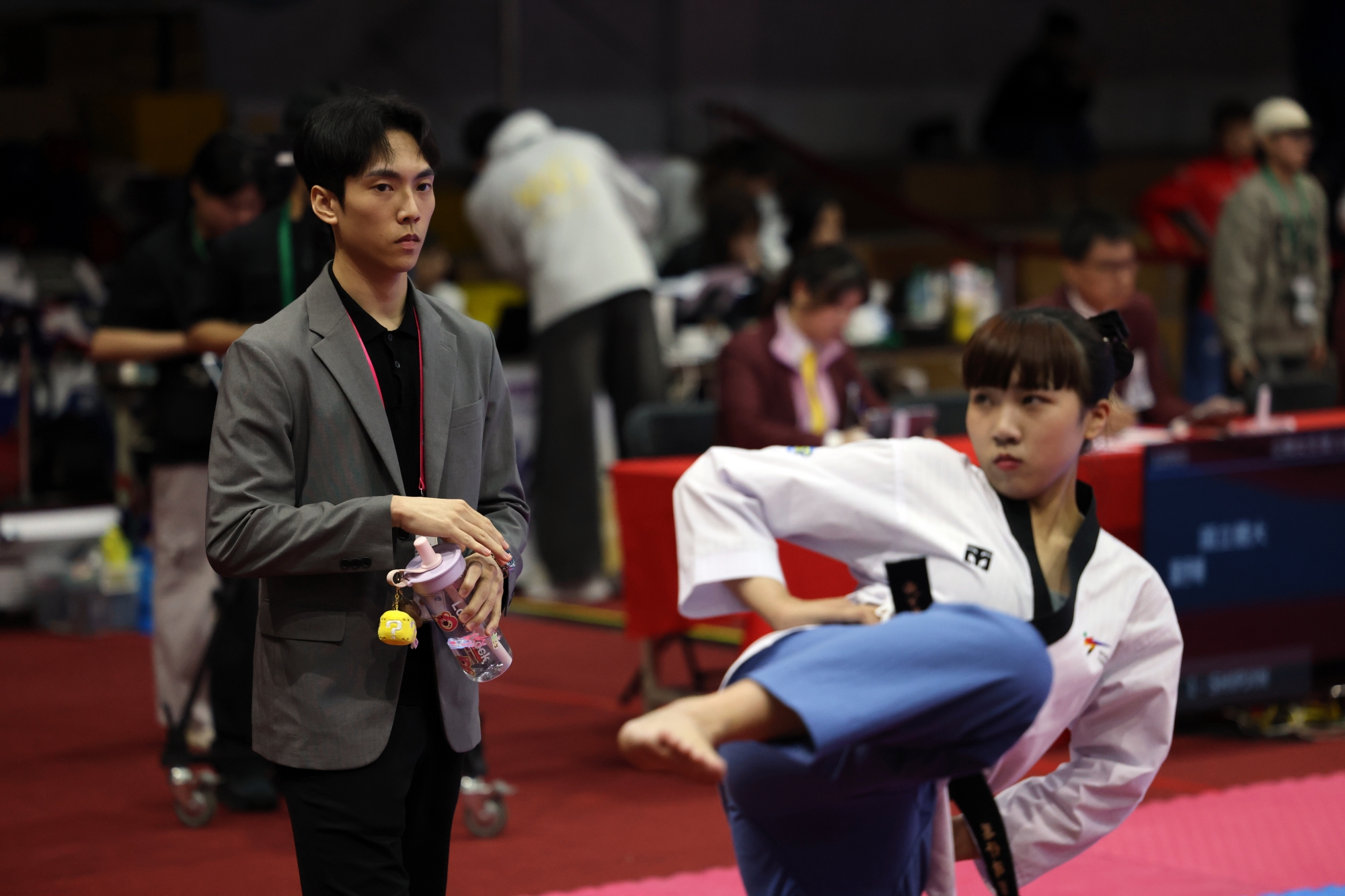 27歲馬允中,選手時期戰功彪炳,杭州亞運男子個人品勢銀牌,全國大專校院運動會累積斬獲8金,107年至110年全大運男團四連霸、108年至110年男單三連霸,以及個人最後一次112年全大運登頂,為賽史上公開男子組個人品勢最多金。