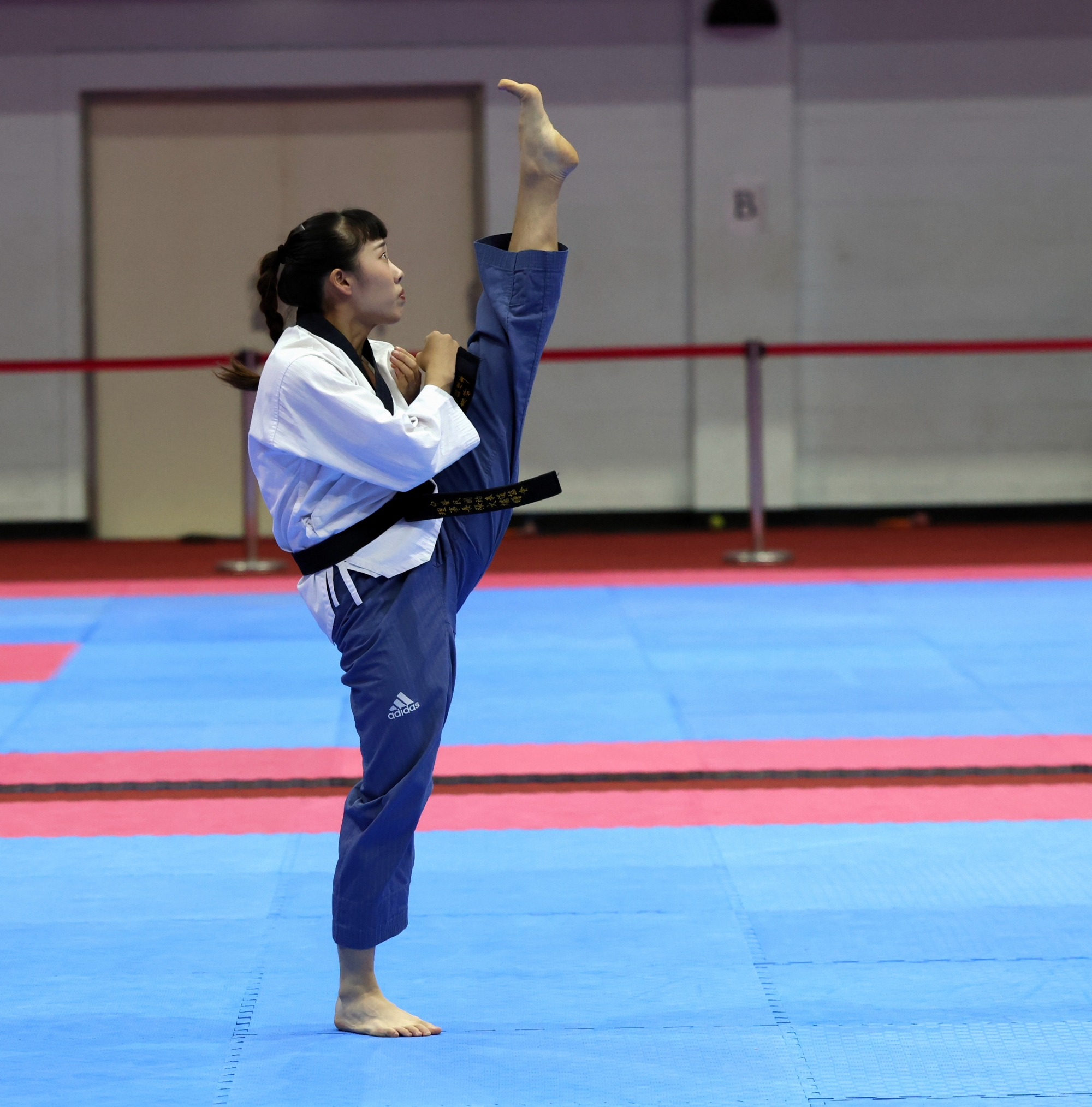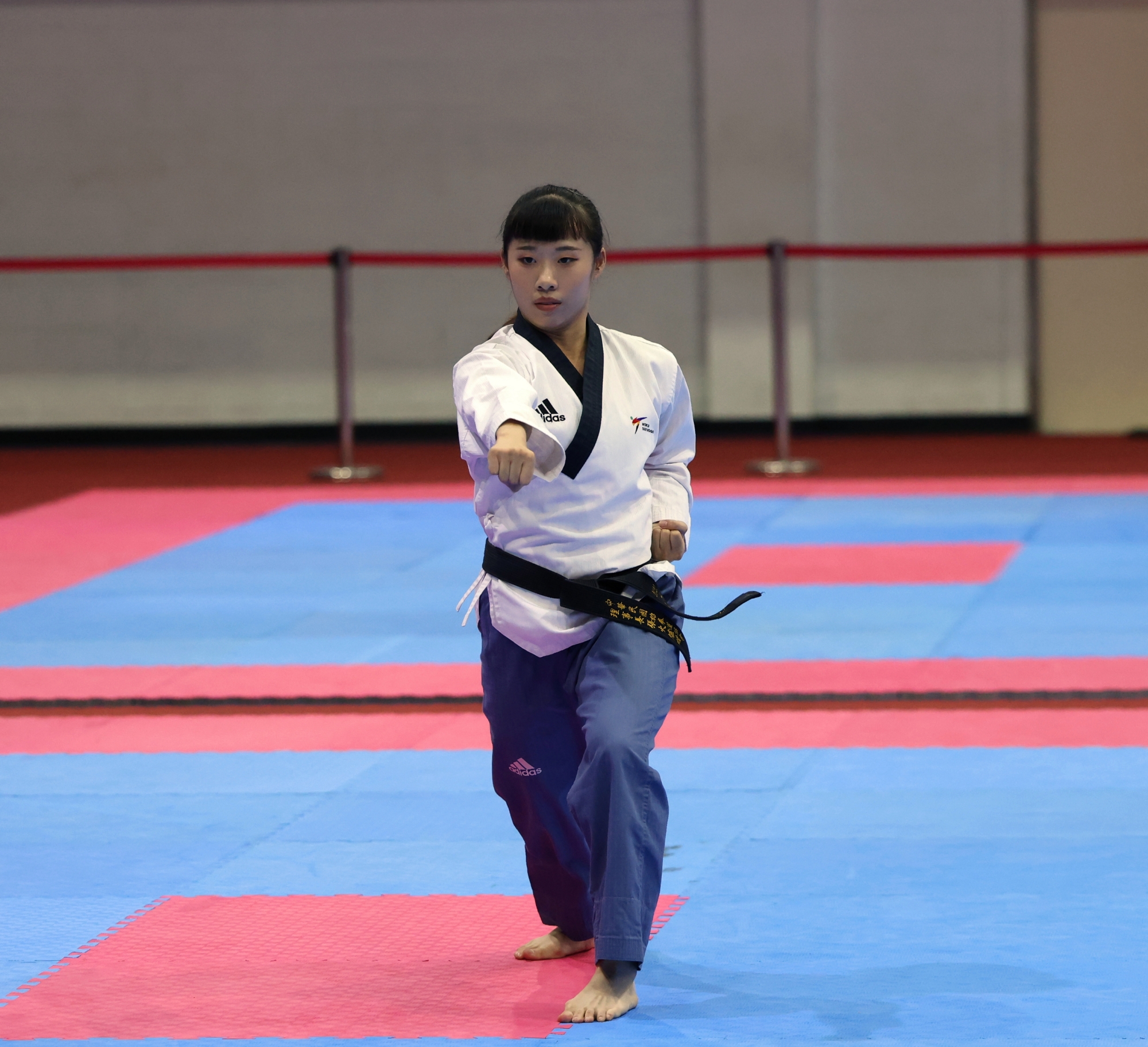 115年全國大專校院運動會,跆拳道品勢賽事在中央大學依仁堂開打,臺灣師大跆拳道品勢隊郭彥妤跟中信學院王敘名,下個月將征戰蒙古亞錦賽,爭取名古屋亞運參賽資格,即使最終門票不屬於他們,但依舊全力以赴,為台灣跆拳道品勢而戰。